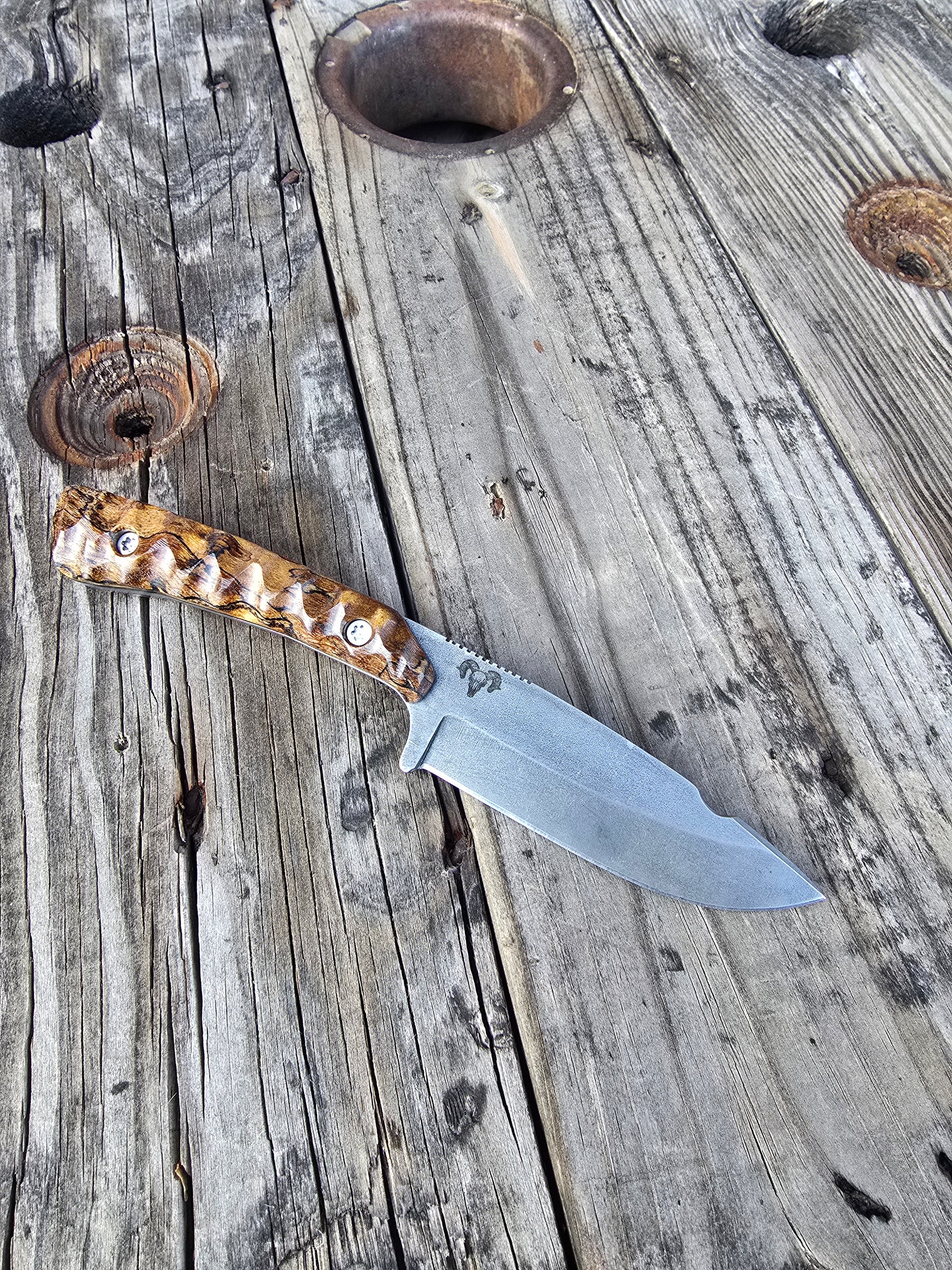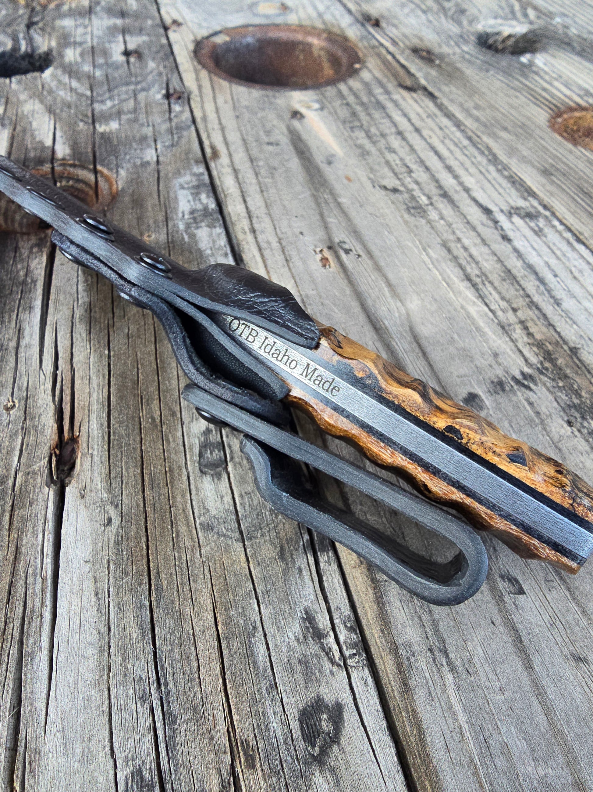Stabilized spalted Maple scales with Black G10 liners and stainless hardware.